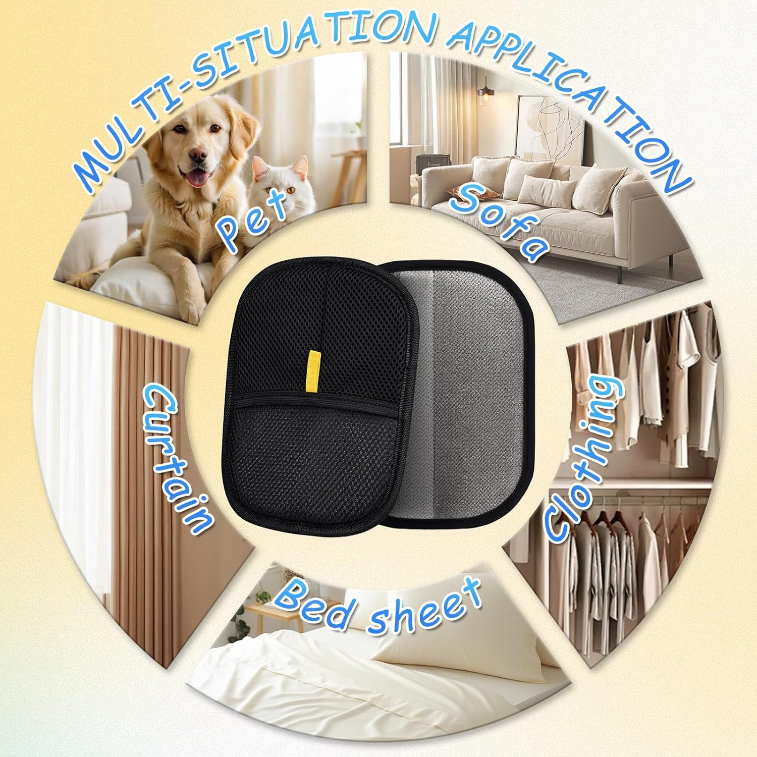 - MULTI-SITUATION APPLICATION: This pet hair removal glove is suitable for all breeds and sizes of dogs and cats, and can also be applied to a wide range of surfaces such as sheets, sofas, clothing, carpets, car seats, curtains and more.